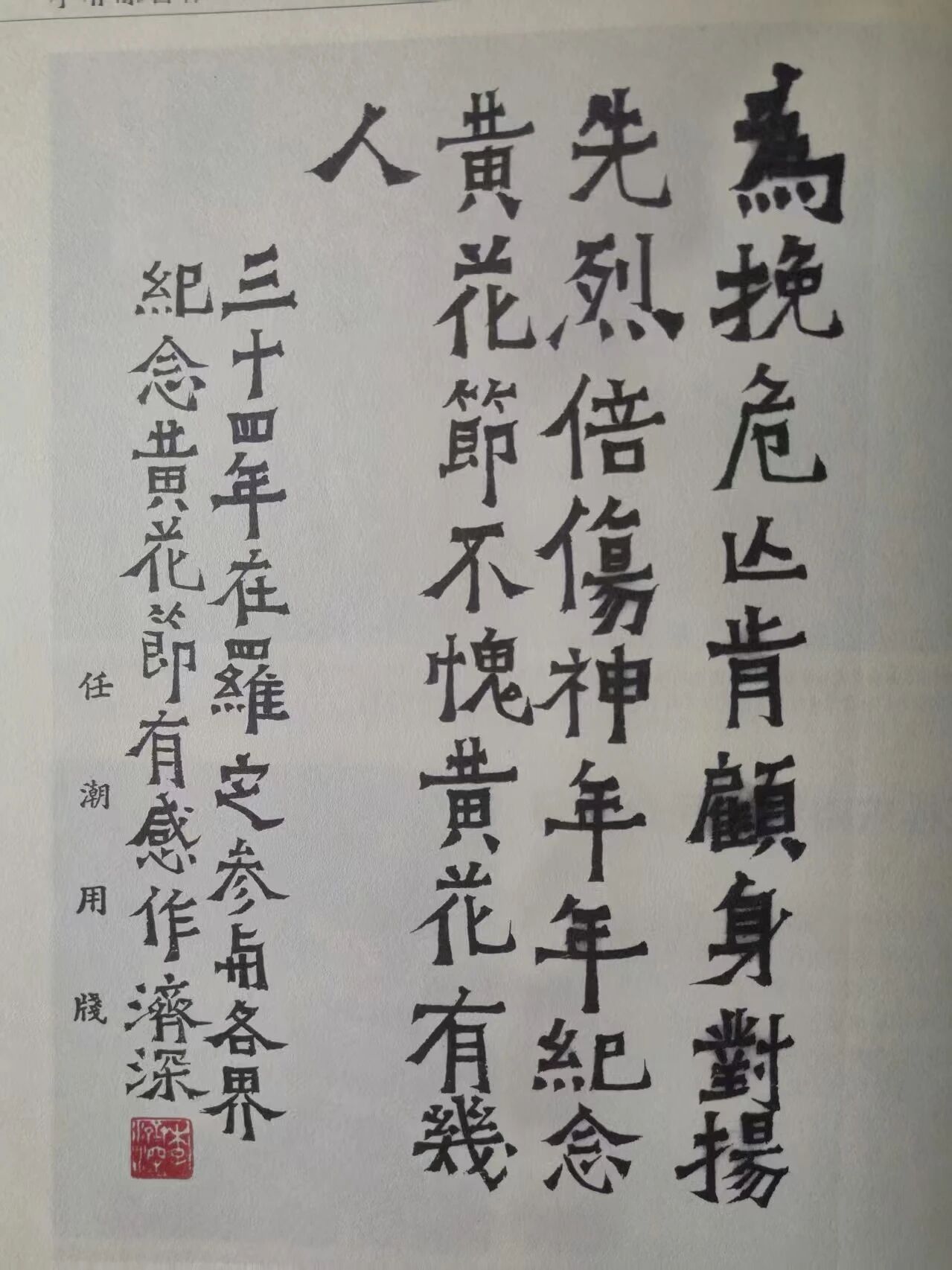1945年3月,李济深手书七绝《纪念黄花节》。